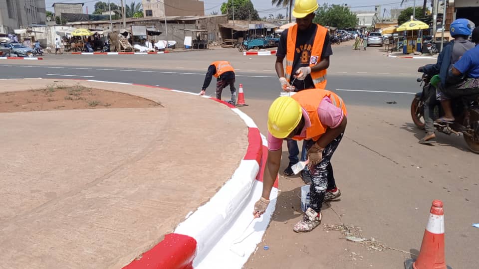La Prevention Routière Togolaise a effectué des travaux de signalisation des ronds-points. Ces travaux consiste à rendre plus visibles les rond-point en vue d’aider les usagers à éviter les accidents de route les nuits.